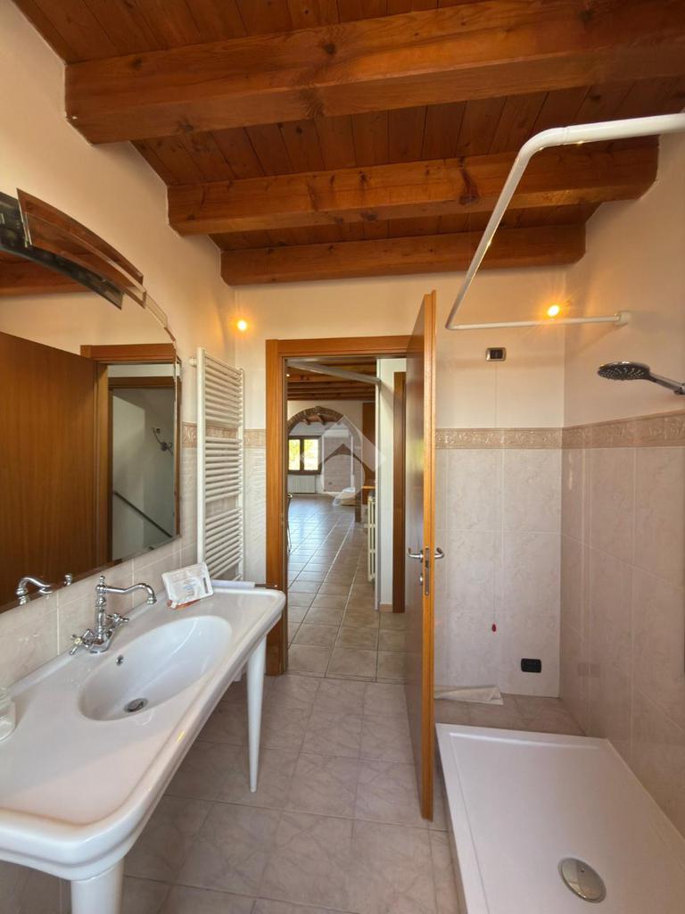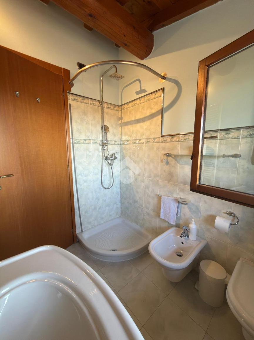 A piano terra l'immobile dispone di doppio ingresso indipendente, lavanderia con doccia e sanitari, (predisposizione lavatrice/asciugatrice e addolcitore) locale con camino collegato alla cucina a pellet del piano primo e ripostiglio dov'è possibile inserire una seconda cucina o creare un'ulteriore stanza/studio.